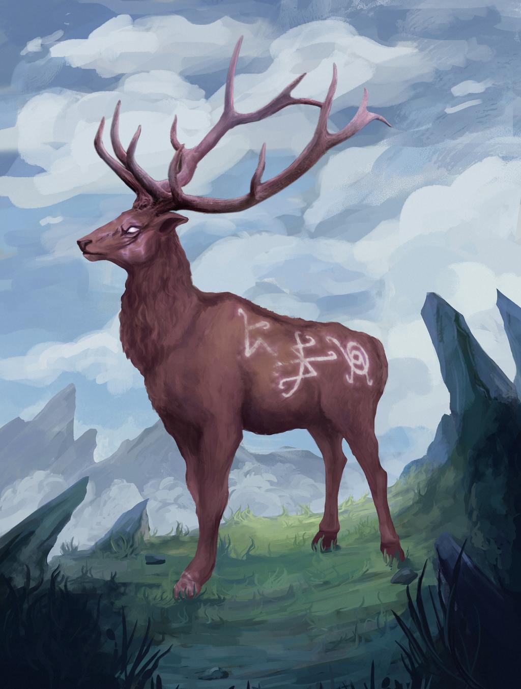 Der Hirsch läuft schneller als ein schneller Botenreiter vorankommt. Er ermüdet jedoch nicht und schwieriger Untergrund (Gebirge, Wasser, Morast, Schnee) behindern ihn weniger. Die Botschaft kann Botschaften von bis zu 4 einfachen Sätzen überbringen und eine Antwort zurück. Alternativ kann der Hirsch die Zielperson anbrüllen und mit einem Zauberzwang beliebigen Inhaltes belegen.